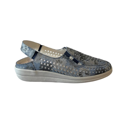 Leather upper, leather lined, casual walking shoe with Velcro strap fastening and removable insole.