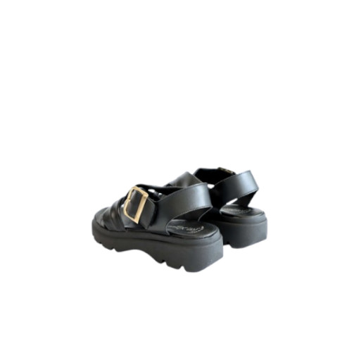 The XBonita J245 sandals in black leather feature a chunky sole, buttery soft criss-cross straps, and a secure ankle buckle.